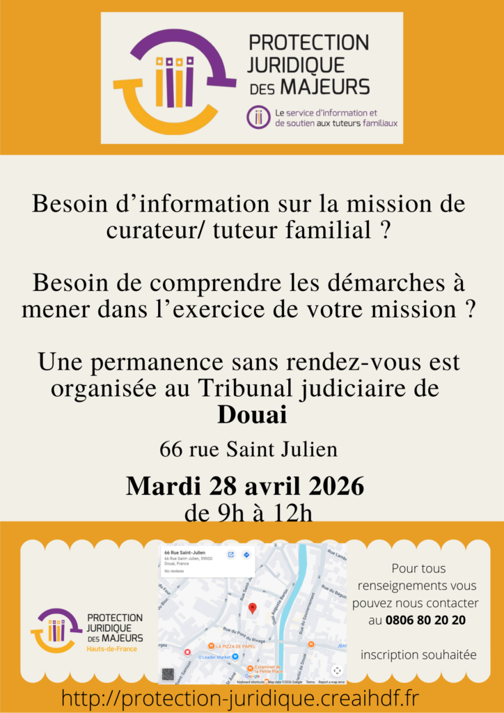 Le Service d’Information et de Soutien aux Tuteurs Familiaux vous propose des permanences ponctuelles sans rendez-vous, organisées au tribunal judiciaire de Douai